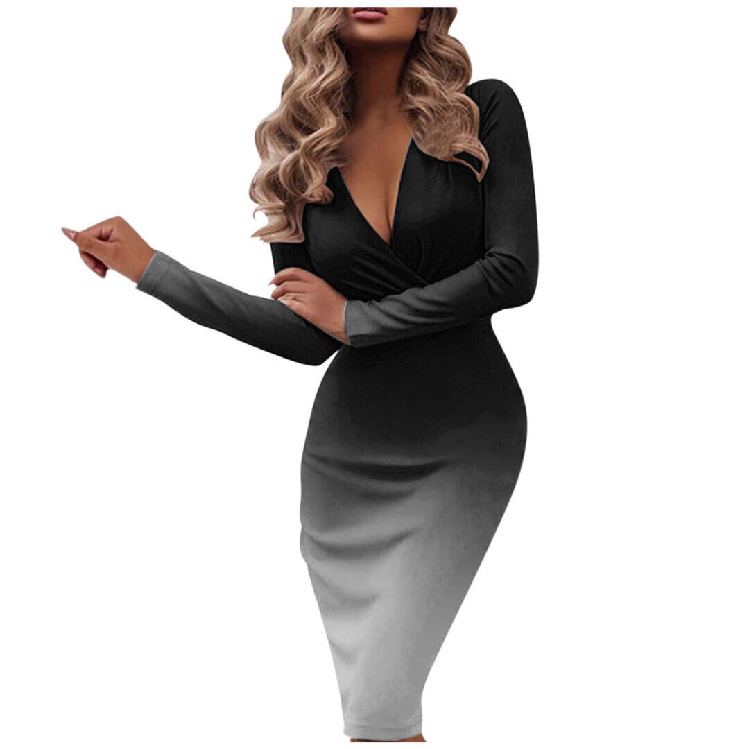 ヨーロッパとアメリカのストリートクロスボーダーAmazonの新しい婦人服グラデーションカラースリム長袖セクシーな深いVネックヒップドレス ロング ヨーロピアン 6733081352592834