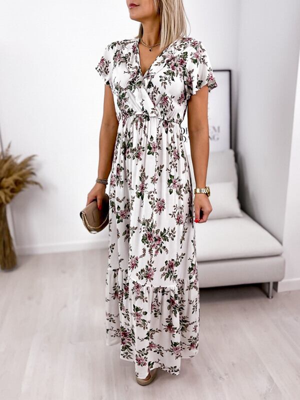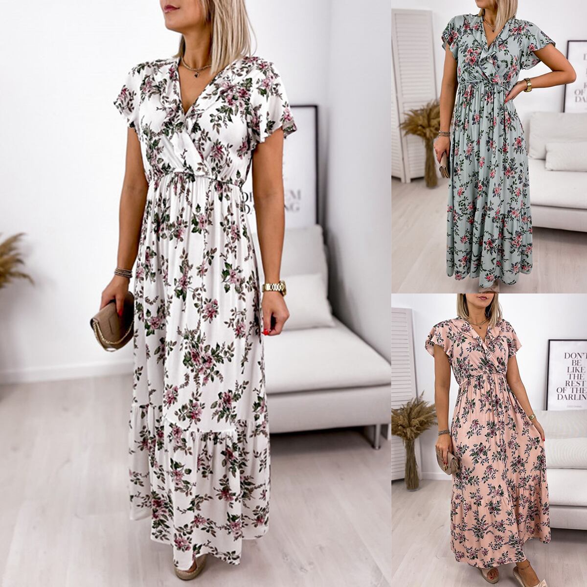 ヨーロッパとアメリカのスタイルのストリートファッション気質 Amazon AliExpress eaby セクシーな印刷 v ネックロングドレスの女性 Vネック ヨーロピアン 6733053956044580