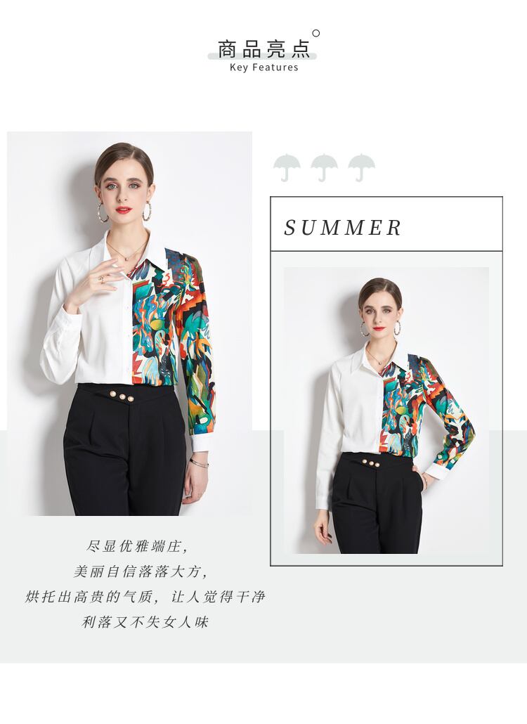 アマゾン ヨーロッパとアメリカ スタイル ストリート ファッション AliExpress ウィッシュ トップ白シャツ新しい プリント長袖シャツ ロング ホワイト ヨーロピアン 6733067166224661