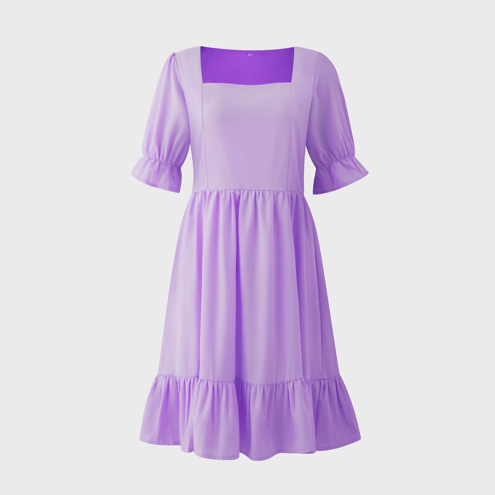 アマゾン AliExpress イービー ヨーロッパとアメリカ スタイル ストリート ファッション気質新しい無地半袖フリル ドレス ソリッドカラー ヨーロピアン 6733067015359921