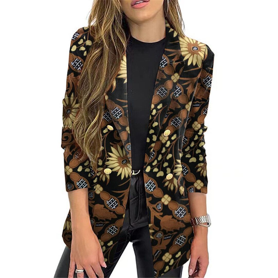 Wish Amazon 欧米風ストリートファッション秋冬新作プリントスモールスーツワンピース長袖コート潮 ロング オータム 秋物 ウィンター 冬物 ヨーロピアン 673302983895242