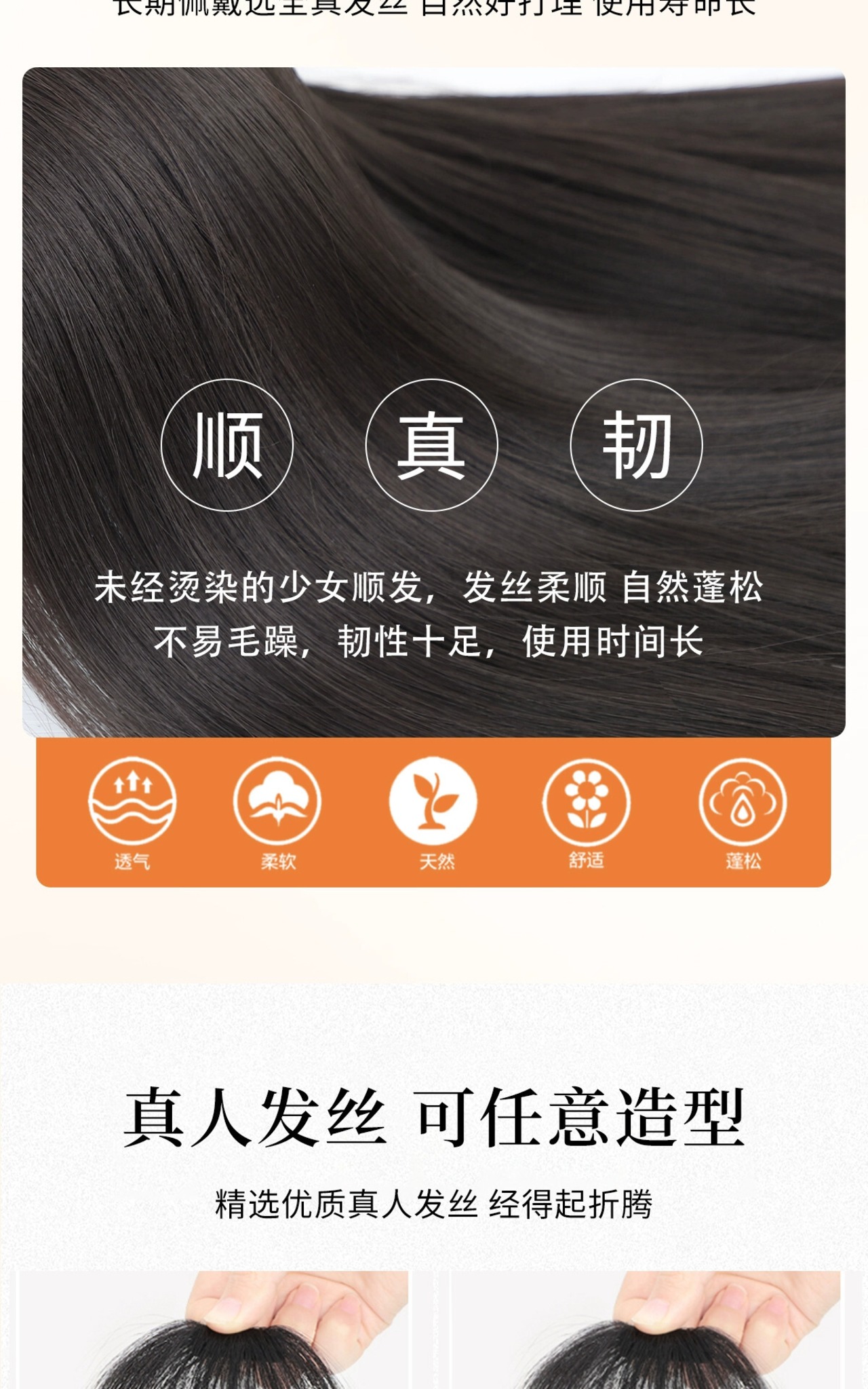 頭頂部に完全な本物の髪を備えた前髪ウィッグ女性、自然な頭、フレンチエア前髪、跡のない、薄い、ストレート前髪ウィッグピース ナチュラル 天然 tiamz16631745063