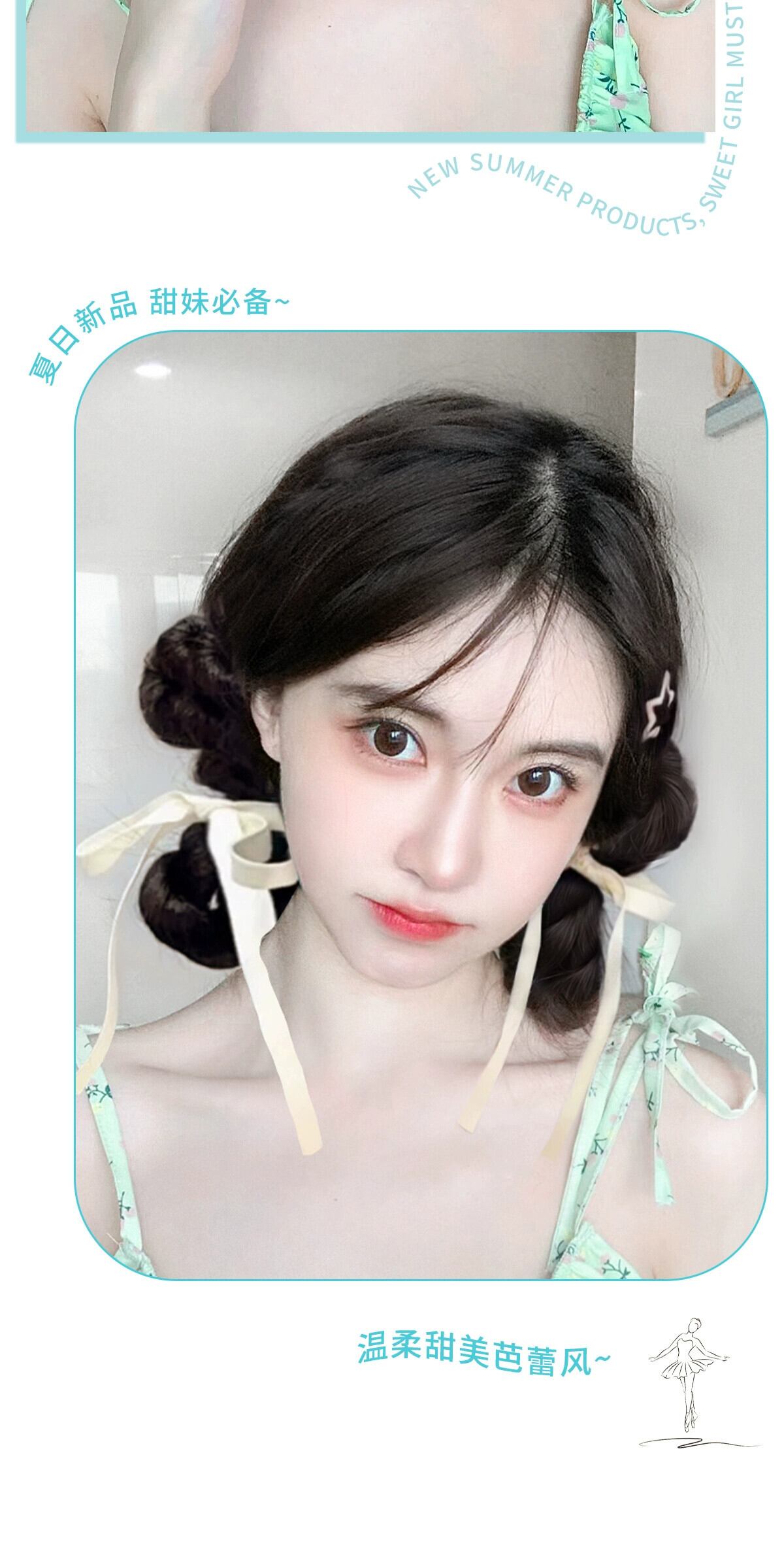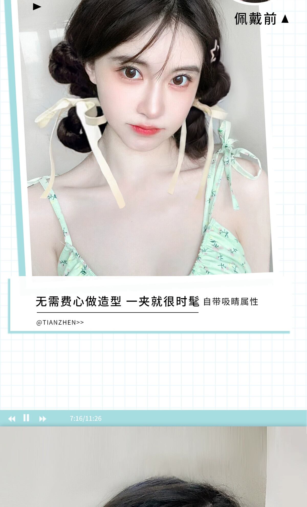 ボールヘッドウィッグ女性レイジーヘアバッグ夏ダブルボールリボン花のつぼみバブル三つ編みファッショナブルな年齢低減かつらクリップ サマー 夏物 フラワーデザイン tiamz11135461792