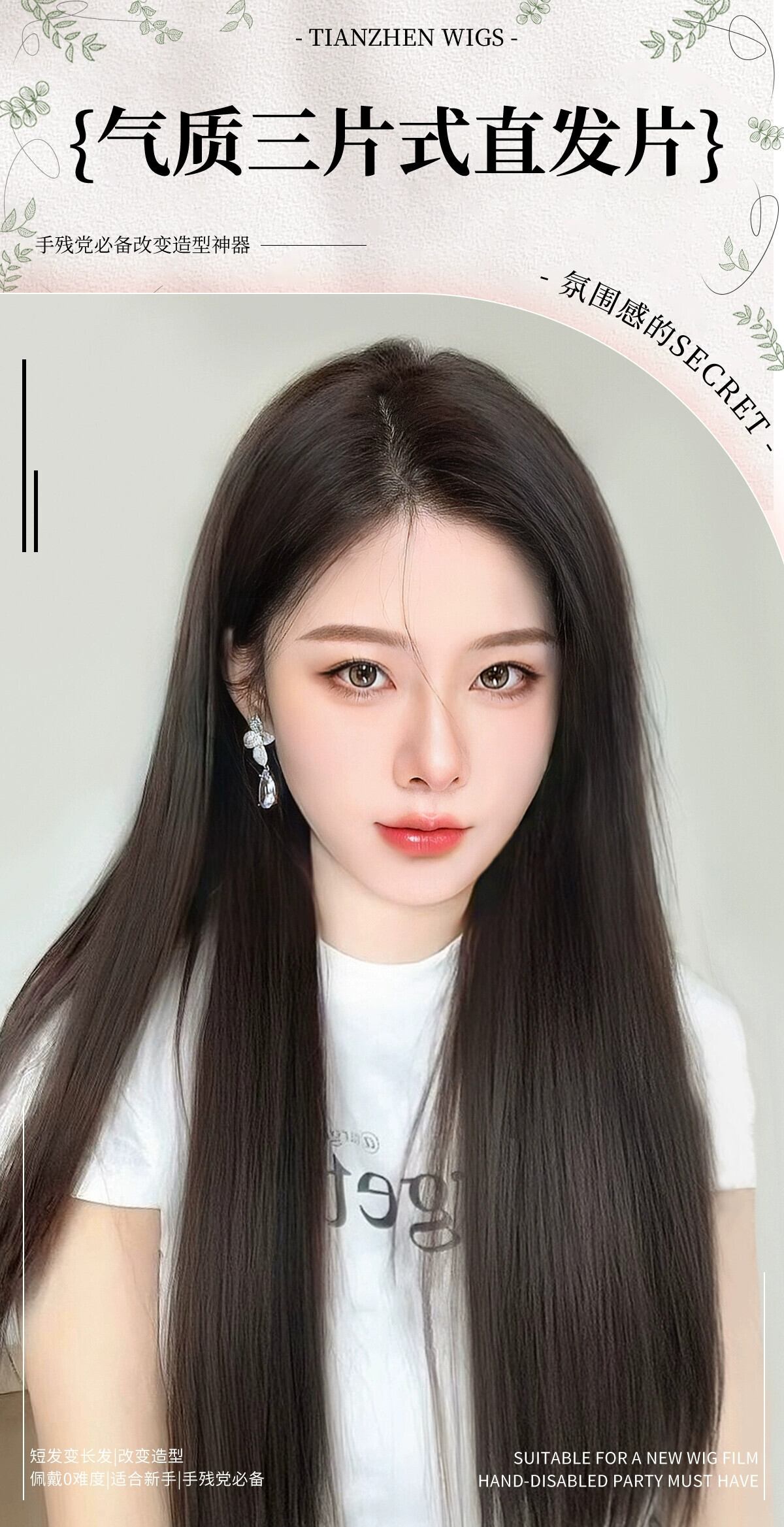 ウィッグピース女性ロングヘア、スリーピースヘアエクステンション、ふわふわ人工毛、ワンピースストレートヘア目に見えない跡のないヘアエクステンションパッチ tiamz71942945733