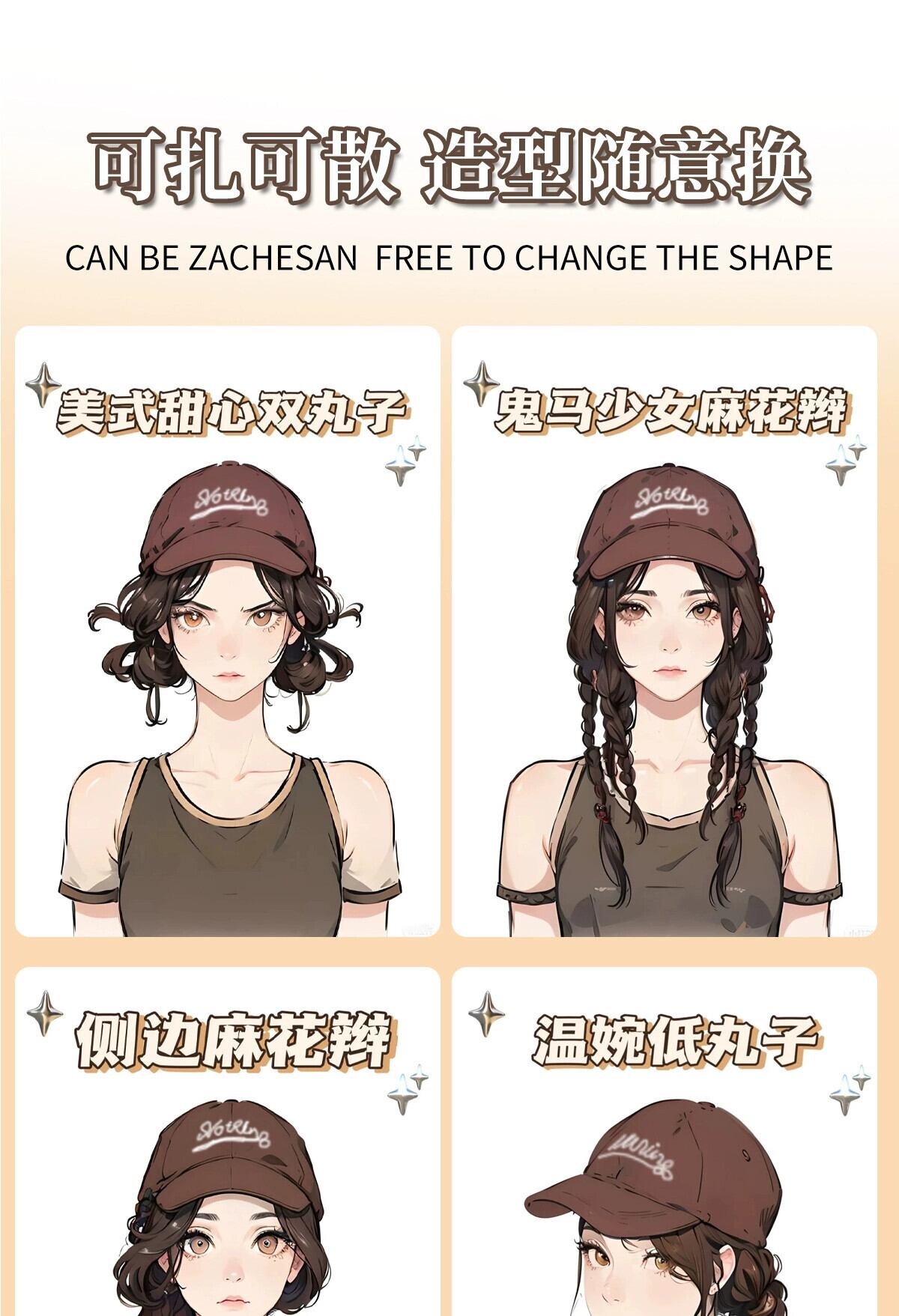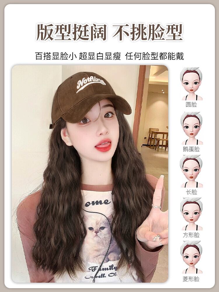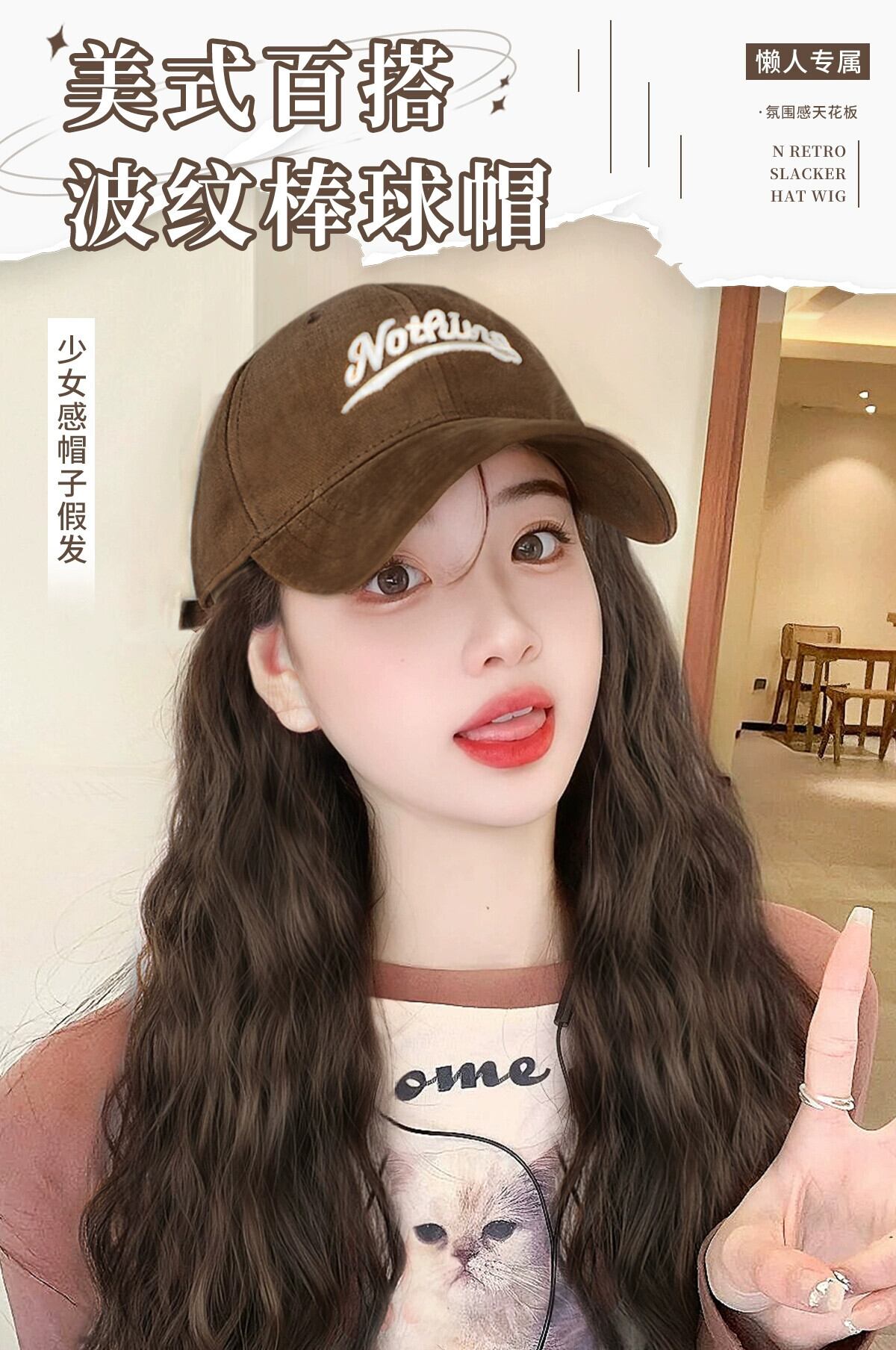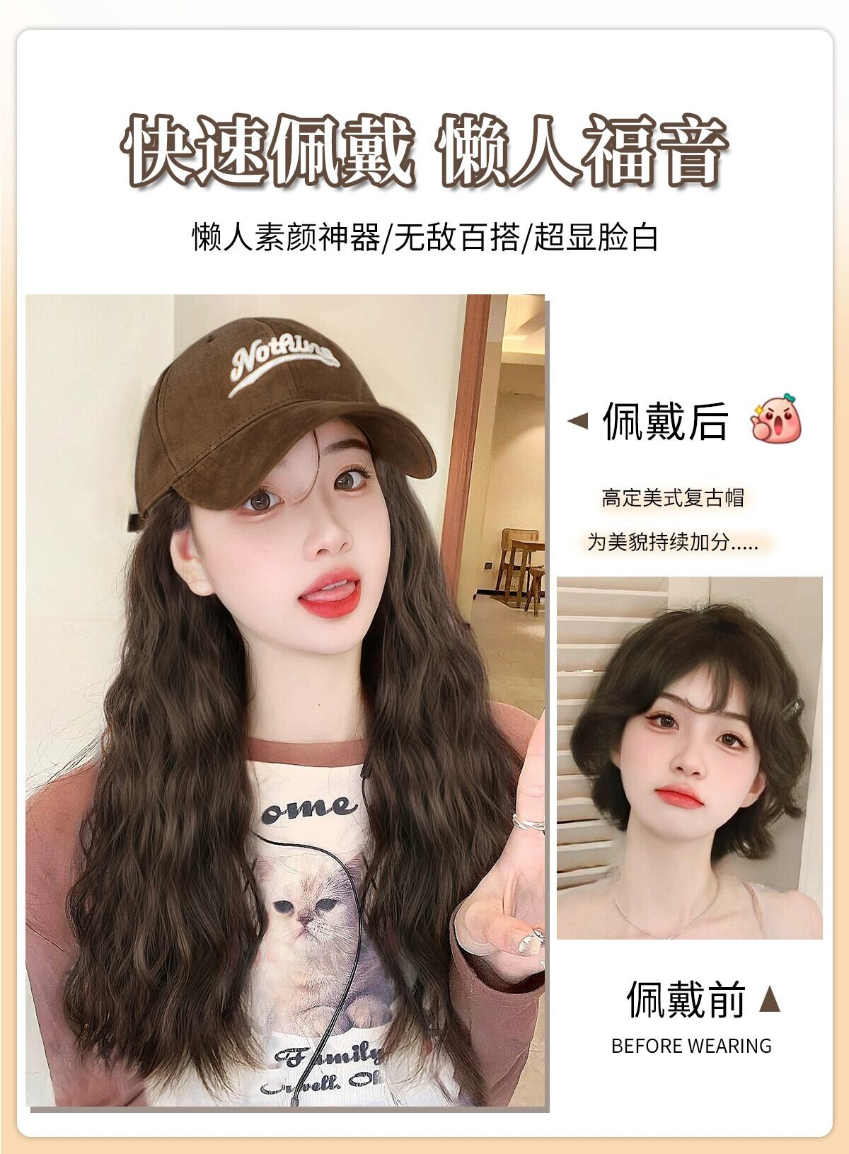 ウィッグと帽子が一体化したファッショナブルな人工毛、新しいスタイルの怠惰なウールロール、アップグレードされた自然なロングヘアウィッグ、フルヘッドカバー ナチュラル 天然 tiamz71504480259