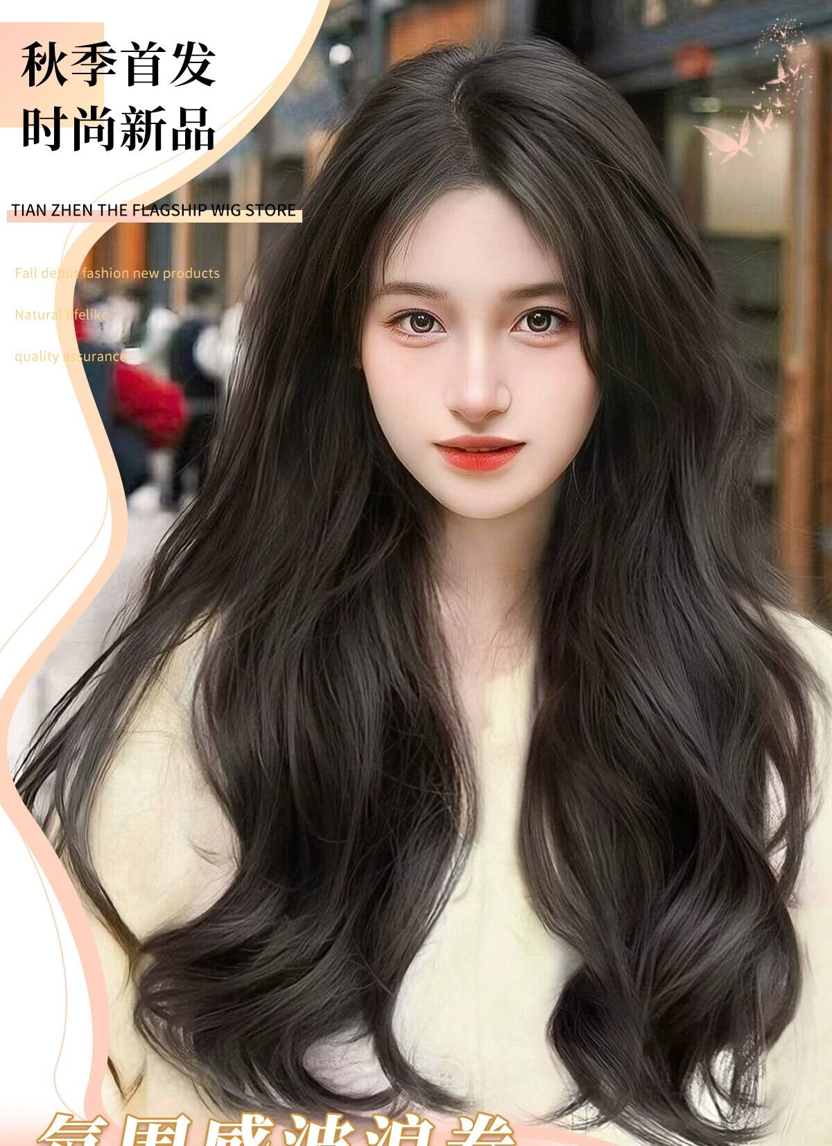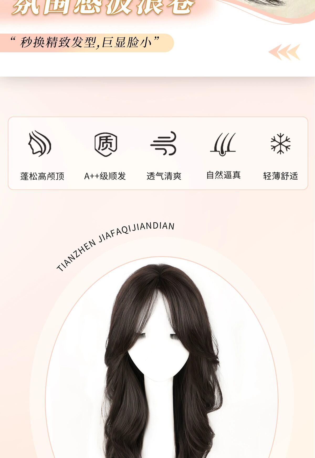 ロングヘアーの女性用ウィッグ、ナチュラルフルヘッドセット、おしゃれなミディアム分けのロング巻き毛、ラージウェーブ人工毛、フル人毛ウィッグセット 天然 tiamz6610290382