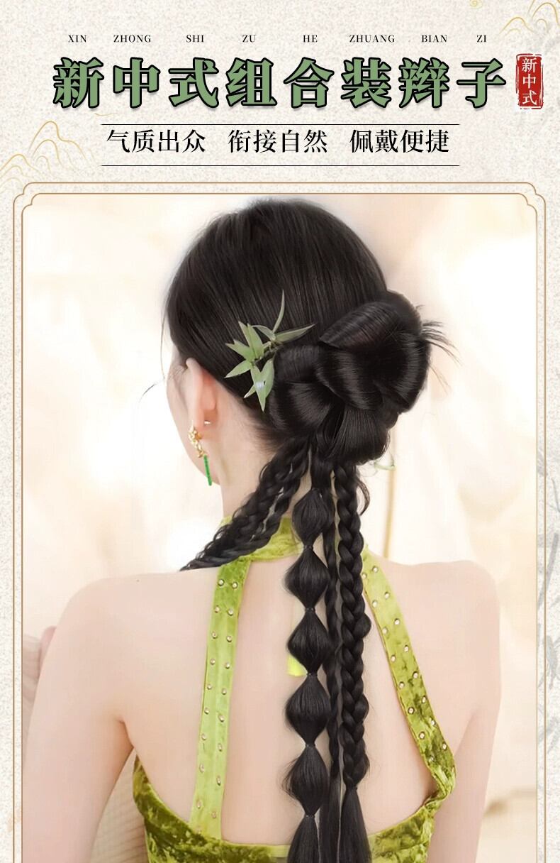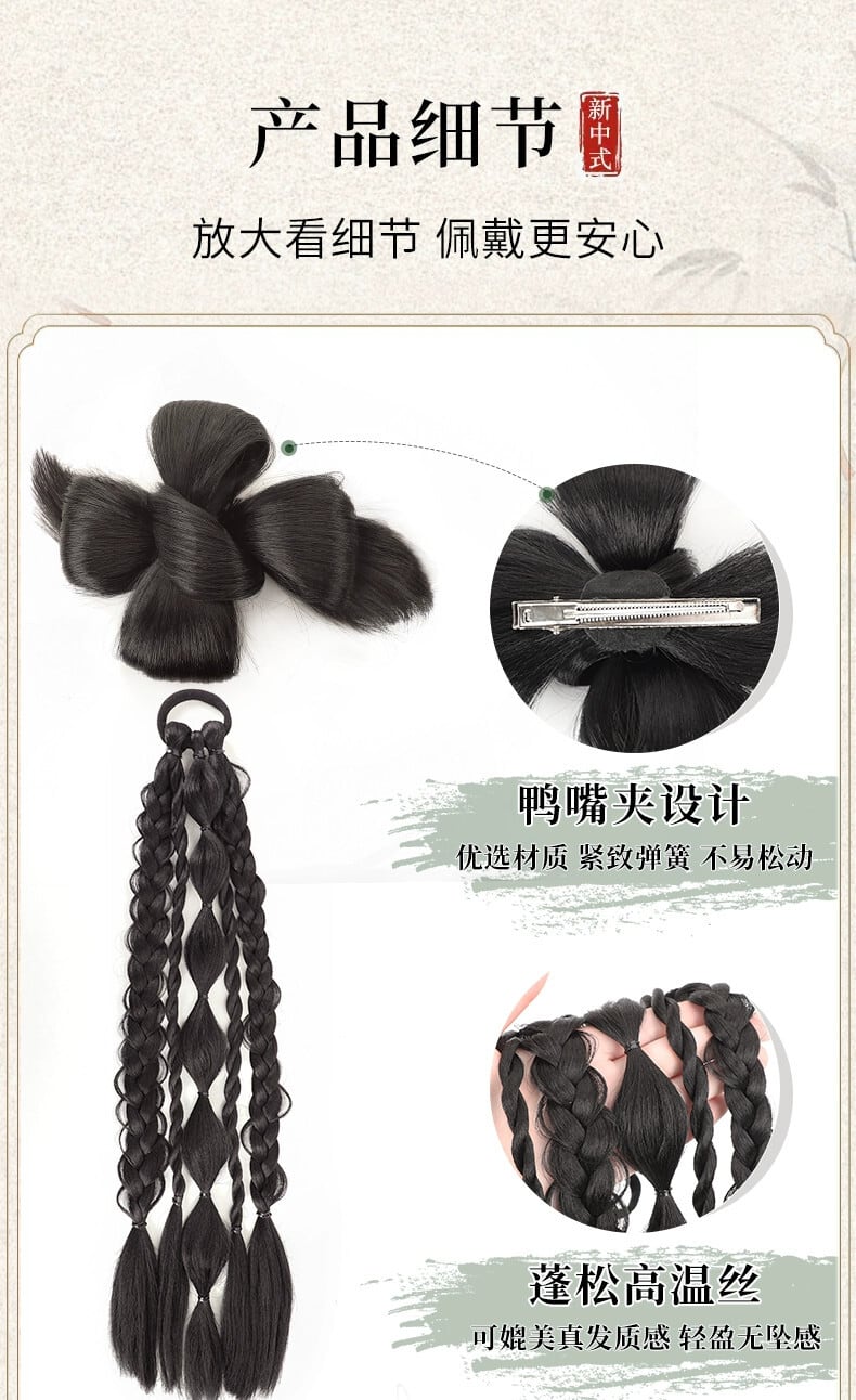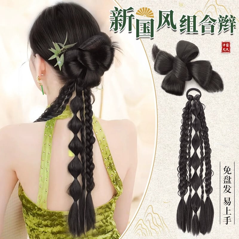 かつら三つ編みポニーテール中国風新中国風かつら三つ編みドレッシングガウンブライダルヘアスタイル模擬髪ツイスト三つ編みかつら 人工 tiamz11789569054